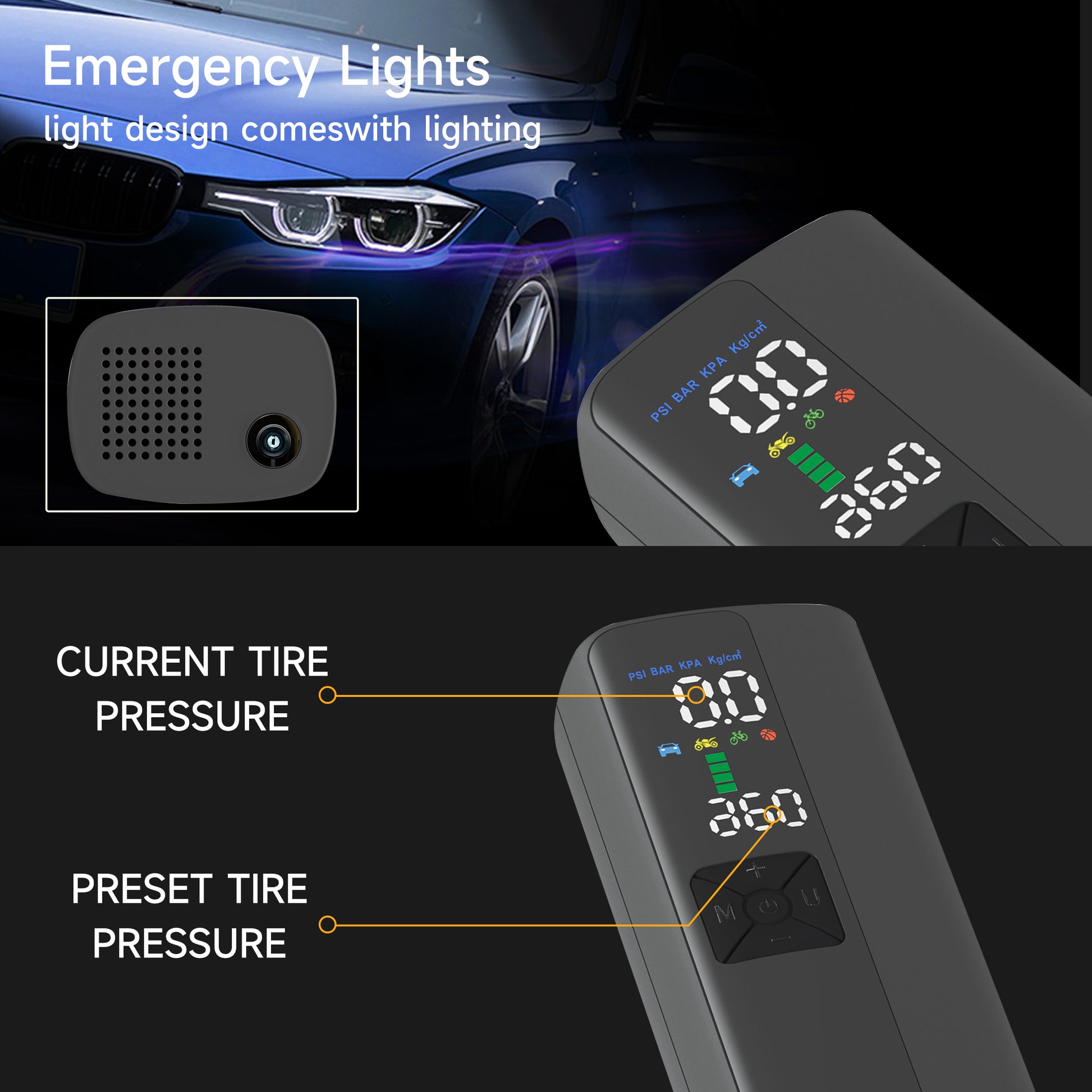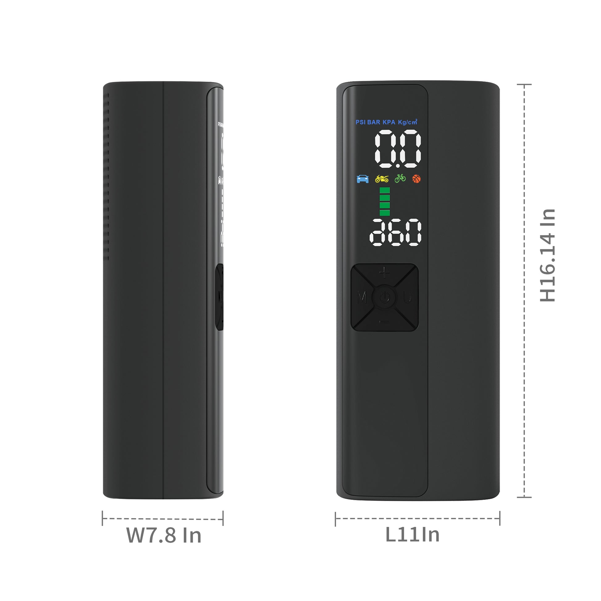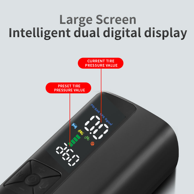 The IOVELOMENT P023 air pump is Except for works with various vehicles, including motorcycles, electric cars, and bicycles. For smaller objects like inflating balls, balloons, lifeguards, swimming rings, inflatable cushions, boats, etc it also works wonders. It has an automated inflating feature that shuts off when the target pressure is achieved. Its automatic inflation design guarantees simple operation without requiring continuous observation. It also functions as accurate air pressure measurement equipment with a digital pressure gauge, enabling you to take precise readings. Its LED illumination feature makes it simple to operate even in dimly lit areas so that you can use it confidently at night. The device has four different inflation modes: "car," "motorcycle," "bicycle," and "ball." Each has pre-set air pressure numbers, but it also has the option for manual modification if necessary. The pump will automatically shut off when the predetermined pressure is reached, allowing you to put your focus elsewhere. It's perfect for everyday use, outdoor activities, and self-driving trips because it's lightweight, compact, and easy to carry. This multipurpose gadget has eight layers of security and a safe, dependable design that allows it to detect tire pressure, operate an air pump, and provide night lighting. It operates effectively in a broad temperature range of -20°C to +60°C thanks to its strong inflation capability of up to 150 psi and high-precision tire pressure detection with a deviation of 0.1 BAR.