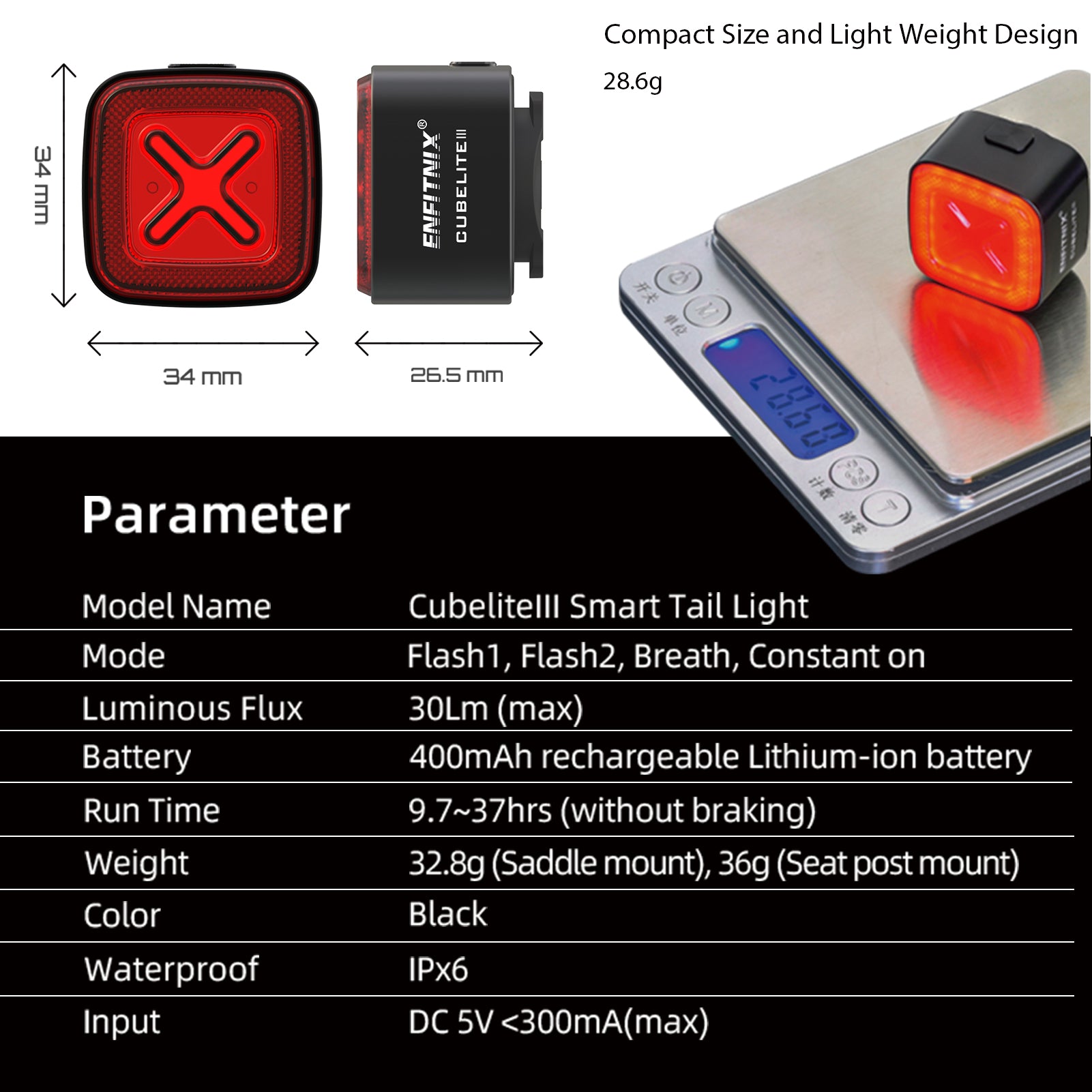 Introducing the ENFITNIX Cubelite III Smart Bike Tail Light — a lightweight, powerful, and intelligent rear light designed to keep you safe on every ride.